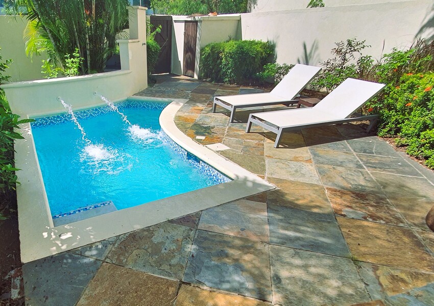Cap Cove is a gated development with a collection of one and two bed apartments, three-bedroom townhouses, and four-bedroom villas alongside the Atlantic Ocean, many with private pools or plunge pools.