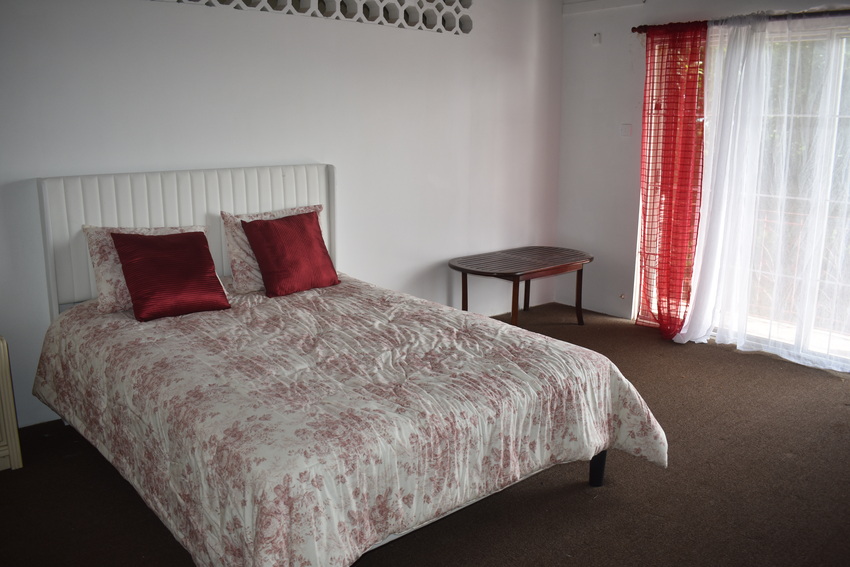 Bedrooms two and three are both bright from sunlight and have queen-size beds with bedside tables. They share the second bathroom which also is designed with a stand-in shower and single vanity. The final bedroom at the end of the hallway, hosts a queen size bed with an ensuite showcasing a single vanity and walk in tiled shower.