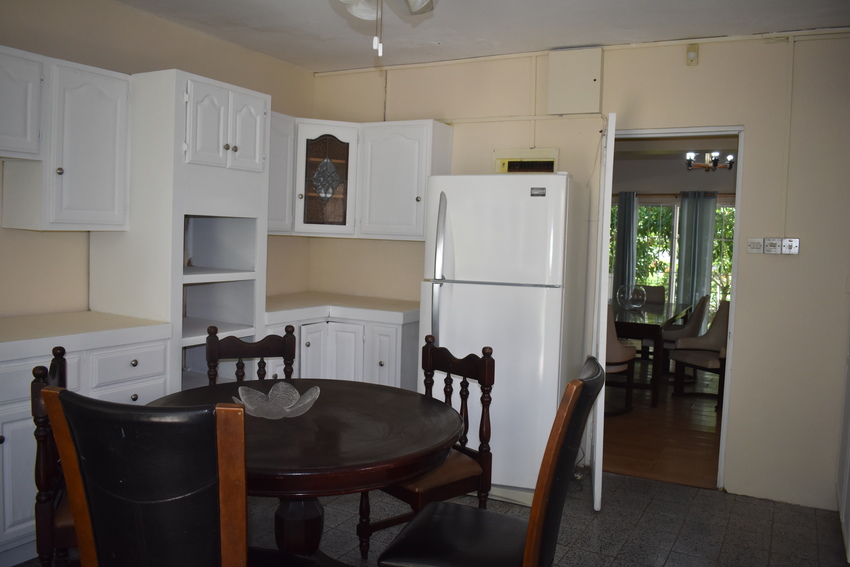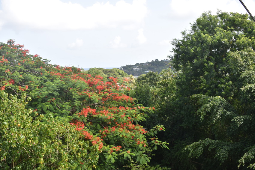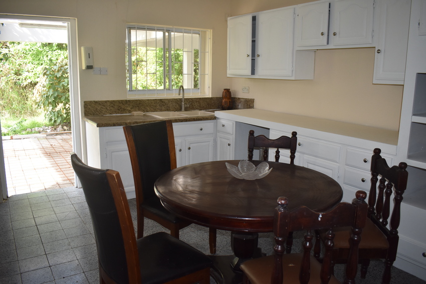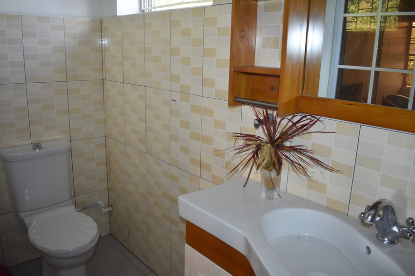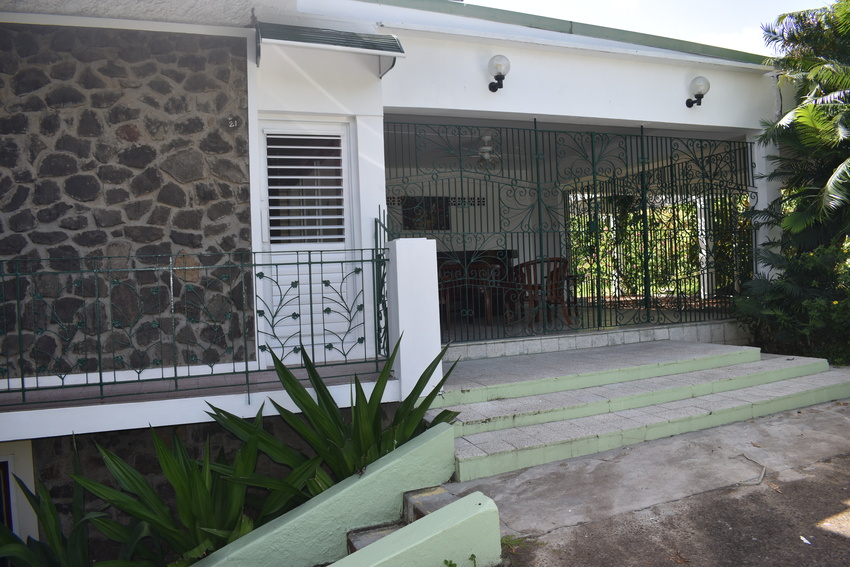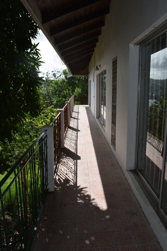 Ideally designed on one level, this home boasts 5 bedrooms and 3.5 bathrooms.  Securely built in a cul de sac at the end of Valmont Lane in the residential community of La Toc. Although deep in tranquility, it is only a 5 minutes’ drive from the commercial hub of Castries. Entering the home through a concrete driveway, the property is set away from the road, ensuring complete privacy. The property’s elevated position not only allows for views of the Caribbean Sea it also encourages cooling easterly breezes which are welcomed on hot days. The paved driveway is bordered by lush, tall flowering trees creating a sense of peace.