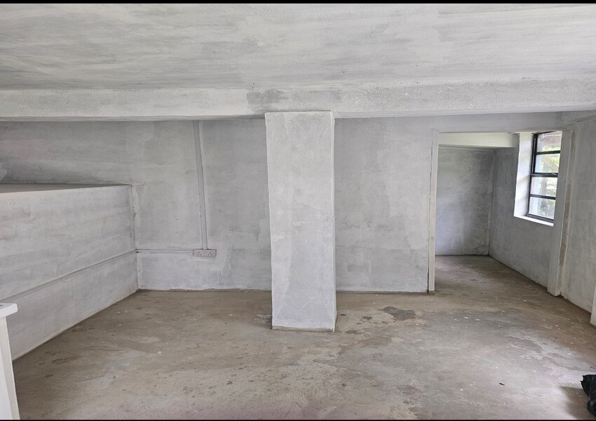 Entering through the main entrance of this flat you are greeted by a spacious open plan living room, dining area and kitchen. The kitchen boasts top to bottom cabinetry with sufficient storage and counter space. The living space is bright and the large windows provide ventilation throughout the space. The second access door leads to the exterior from the dining area. There are two designated laundry areas, one in the kitchen area and the other in the balcony.