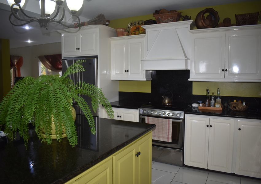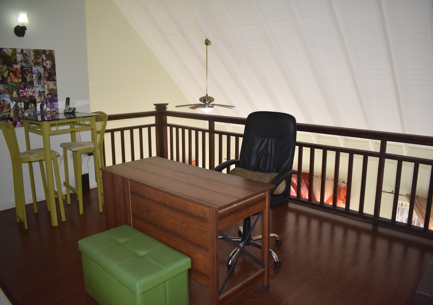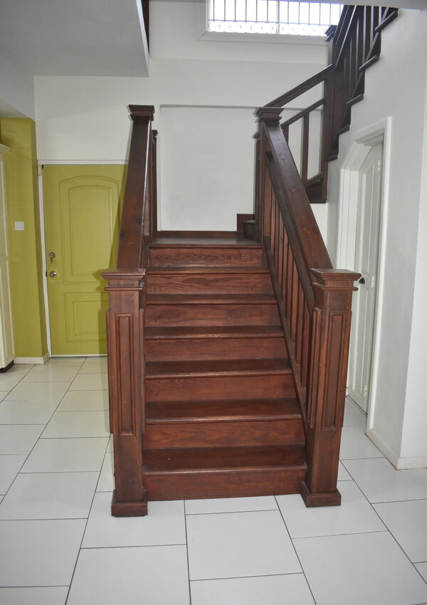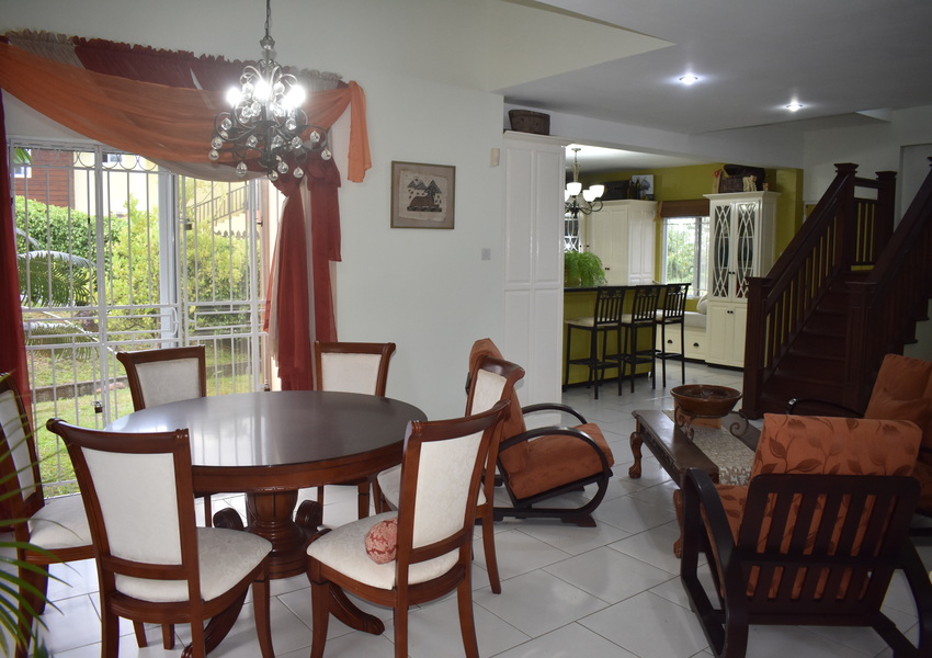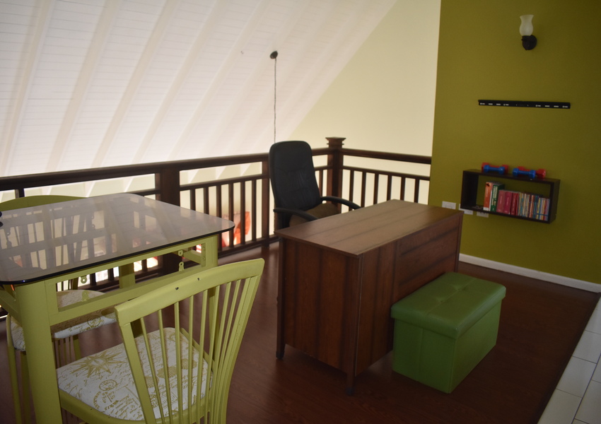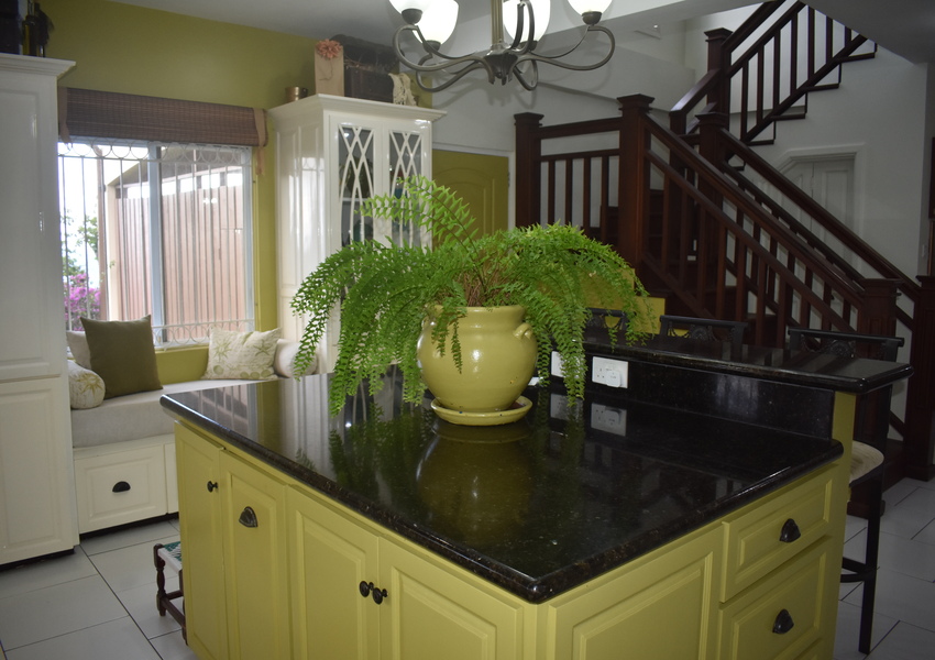 Designed for both practicality and security, every window and door is netted and fitted with elegant security bars. Though there’s no air conditioning, the homes’ open design and breezy layout make it refreshingly cool year-round. Key features include a spacious mezzanine overlooking the living and dining area, accessed by the elegantly designed dark wood stairs. This area is adorned with hardwood flooring and provides a welcoming sanctuary for avid TV enthusiasts or can also be transformed to an at home office.