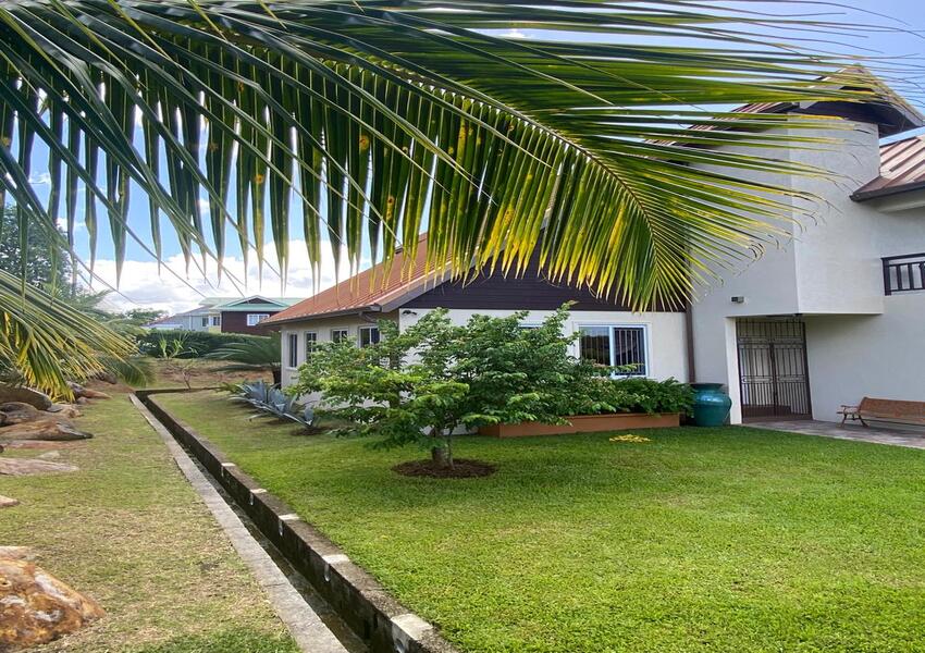 Set amidst beautifully manicured lawns and pristine landscaping, this home offers stunning panoramic views of both the sea and surrounding mountains from its expansive upper-level balcony, ideal for entertaining family socials and friends or simply soaking in Saint Lucia’s natural beauty.